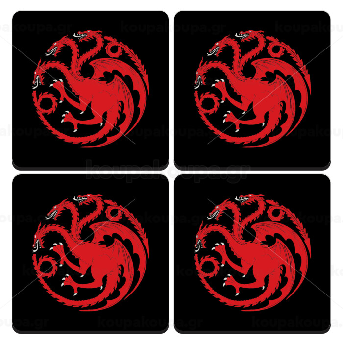 GOT House Targaryen, Fire Blood, ΣΕΤ 4 Σουβέρ ξύλινα τετράγωνα (9cm)