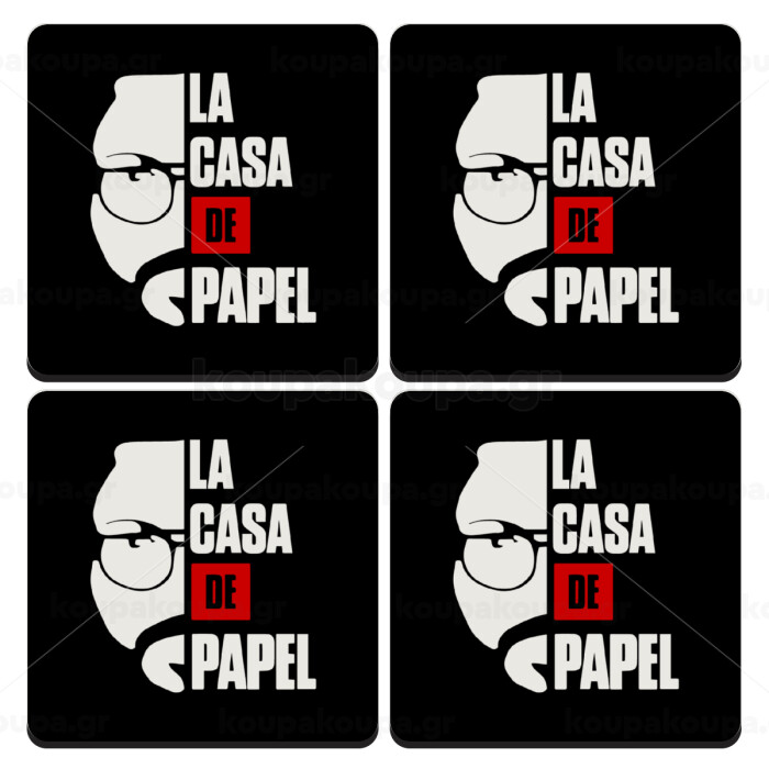 La casa de papel, ΣΕΤ 4 Σουβέρ ξύλινα τετράγωνα (9cm)