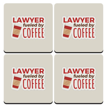 Lawyer fueled by coffee, ΣΕΤ 4 Σουβέρ ξύλινα τετράγωνα (9cm)