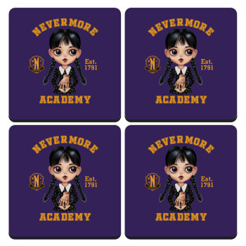 Wednesday Adams, nevermore, ΣΕΤ 4 Σουβέρ ξύλινα τετράγωνα (9cm)