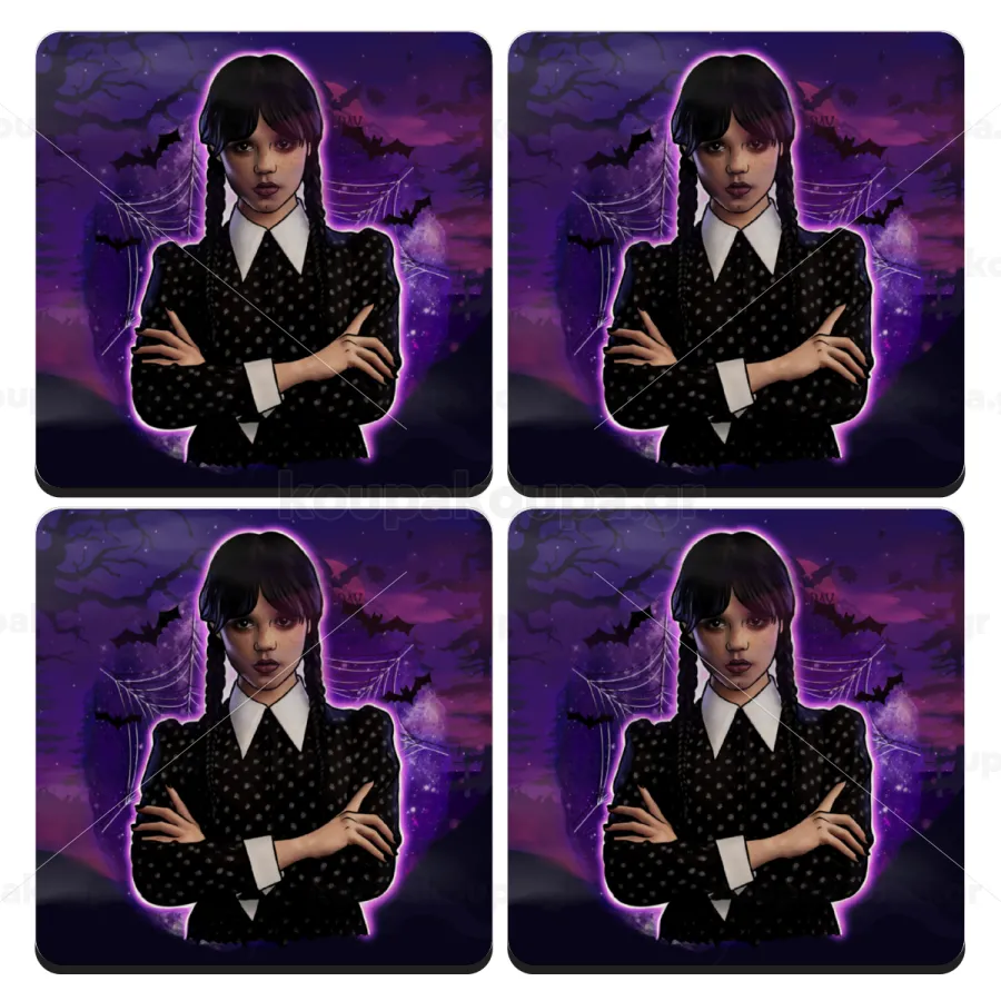 Wednesday moonlight, ΣΕΤ 4 Σουβέρ ξύλινα τετράγωνα (9cm)