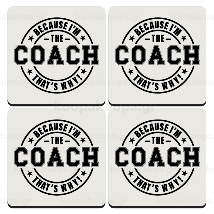 Because i'm the Coach, ΣΕΤ 4 Σουβέρ ξύλινα τετράγωνα (9cm)
