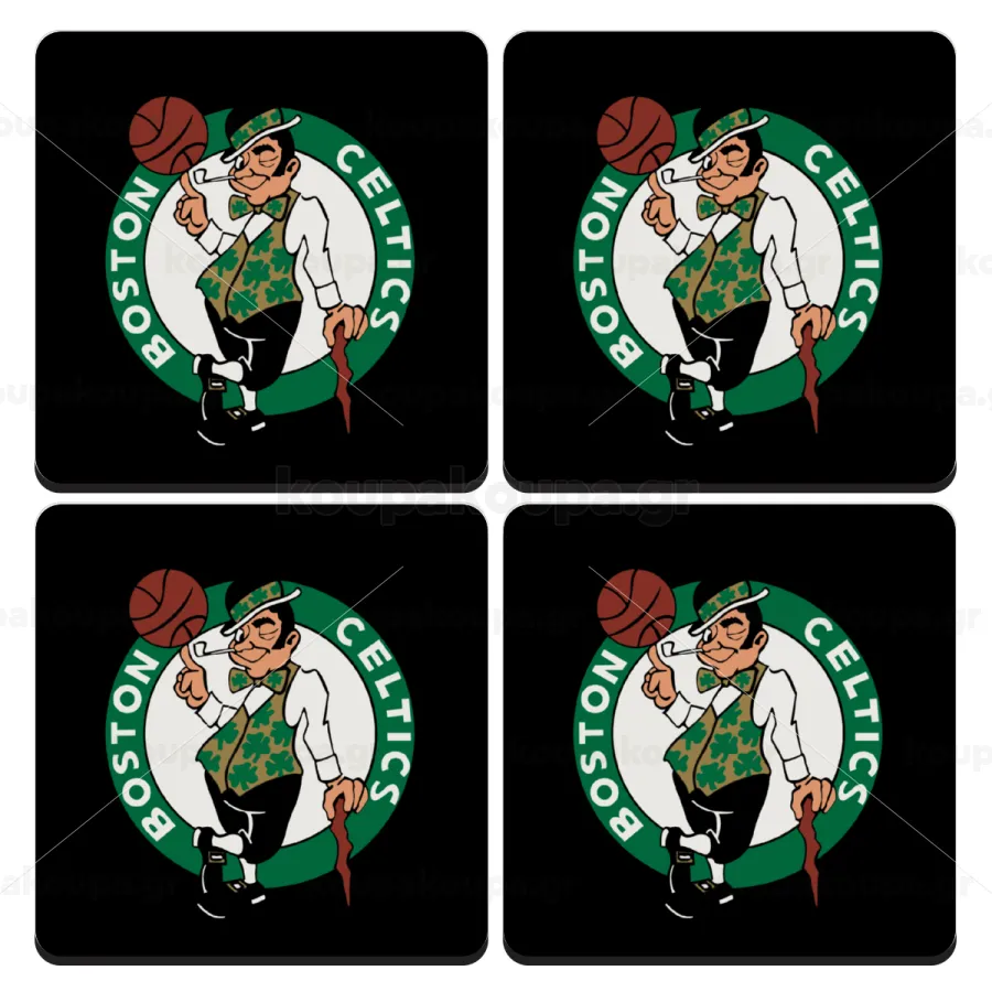 Boston Celtics, ΣΕΤ 4 Σουβέρ ξύλινα τετράγωνα (9cm)