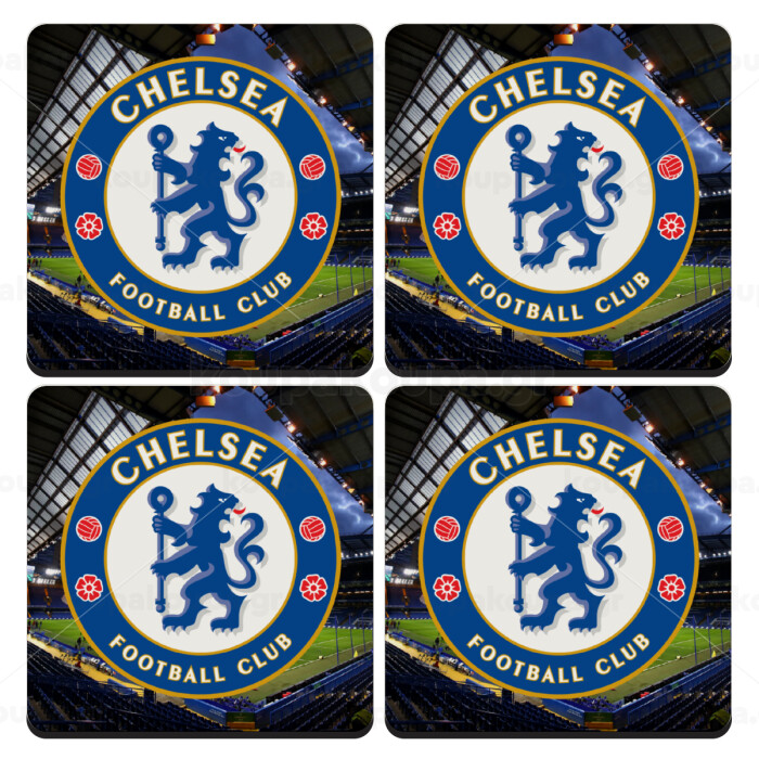 FC Chelsea, ΣΕΤ 4 Σουβέρ ξύλινα τετράγωνα (9cm)