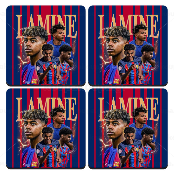 lamine yamal FCB, ΣΕΤ 4 Σουβέρ ξύλινα τετράγωνα (9cm)