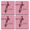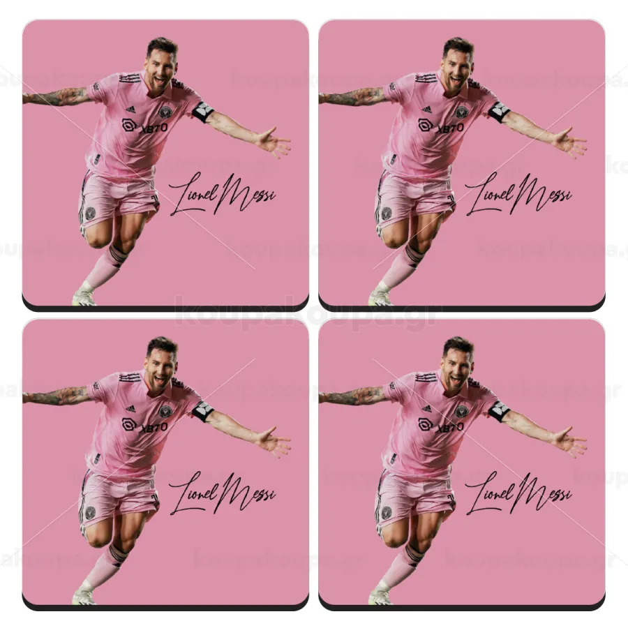 Lionel Messi inter miami jersey, ΣΕΤ 4 Σουβέρ ξύλινα τετράγωνα (9cm)