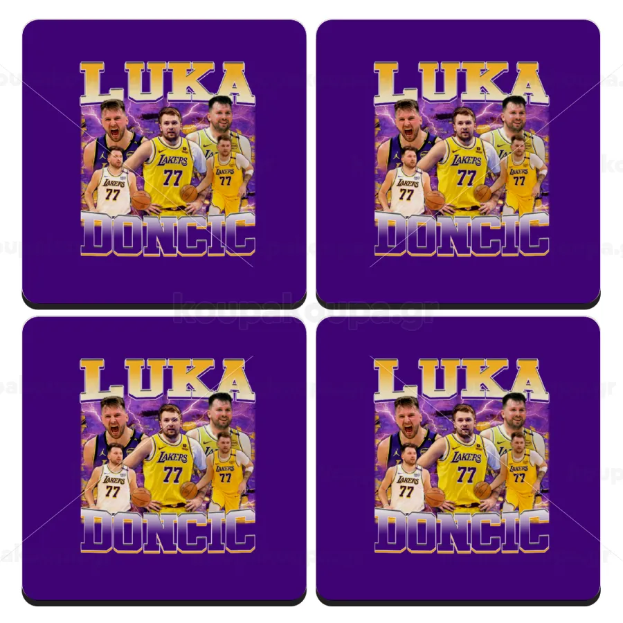Luka Doncic Basketball , ΣΕΤ 4 Σουβέρ ξύλινα τετράγωνα (9cm)