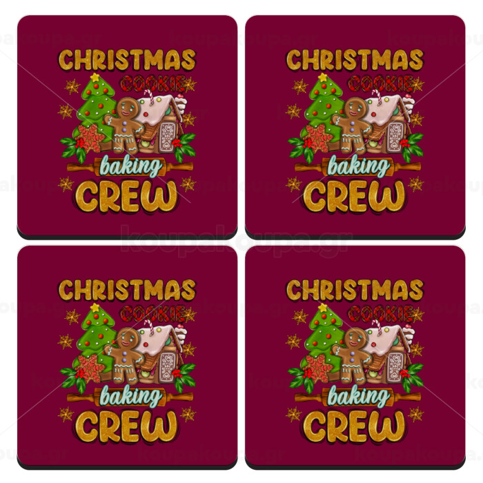 Christmas Cookie Baking Crew, ΣΕΤ 4 Σουβέρ ξύλινα τετράγωνα (9cm)