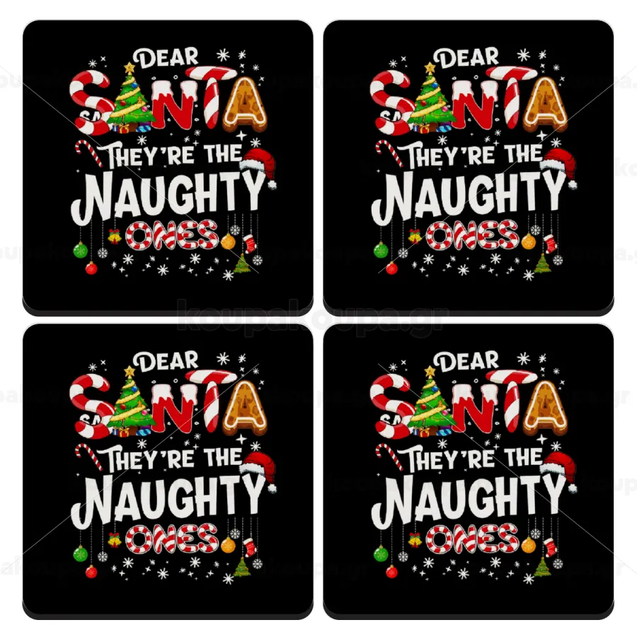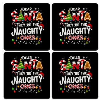 Dear santa they're the naughty , ΣΕΤ 4 Σουβέρ ξύλινα τετράγωνα (9cm)