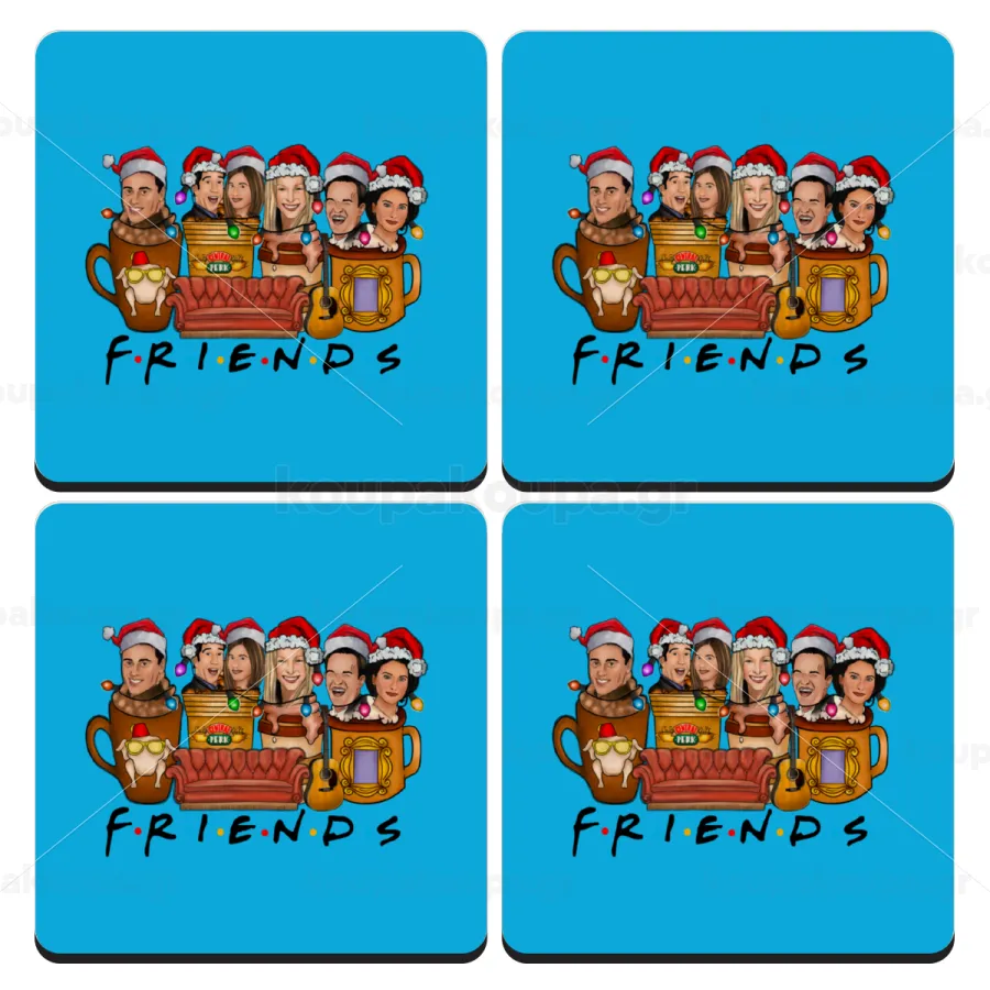 FRIENDS xmas, ΣΕΤ 4 Σουβέρ ξύλινα τετράγωνα (9cm)