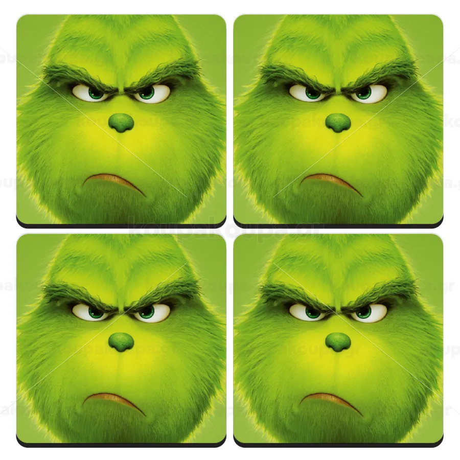mr grinch, ΣΕΤ 4 Σουβέρ ξύλινα τετράγωνα (9cm)