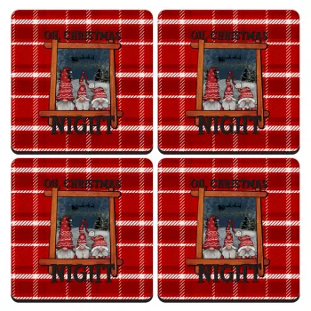 Oh Christmas Night, ΣΕΤ 4 Σουβέρ ξύλινα τετράγωνα (9cm)
