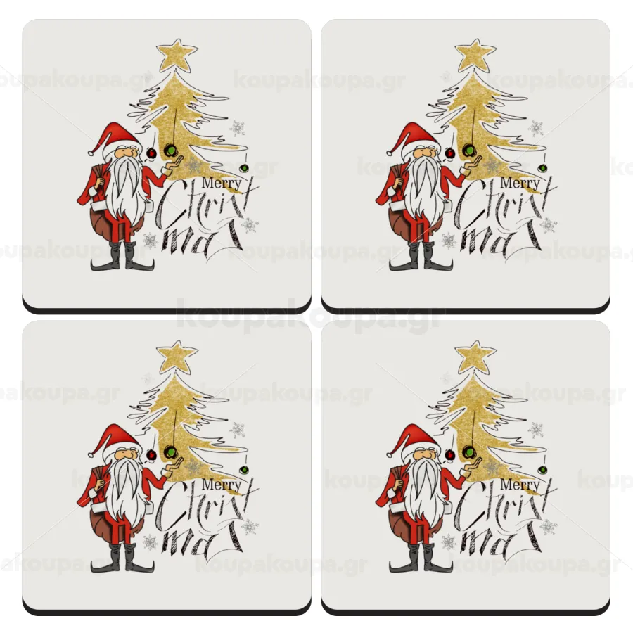 Santa Claus gold, ΣΕΤ 4 Σουβέρ ξύλινα τετράγωνα (9cm)