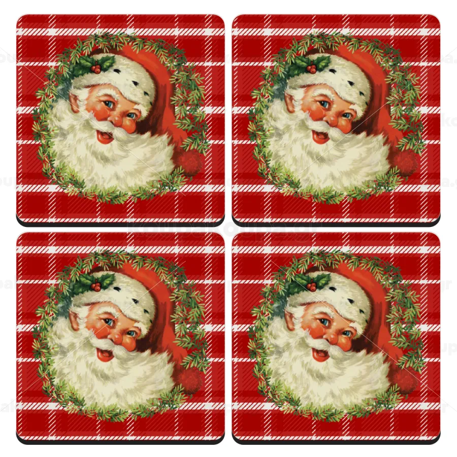 Santa Claus, ΣΕΤ 4 Σουβέρ ξύλινα τετράγωνα (9cm)
