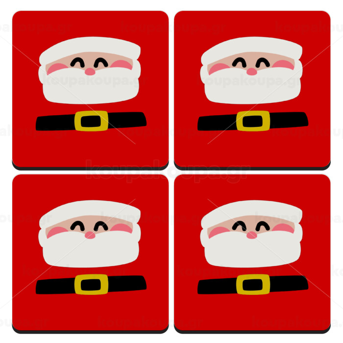 Simple Santa, ΣΕΤ 4 Σουβέρ ξύλινα τετράγωνα (9cm)