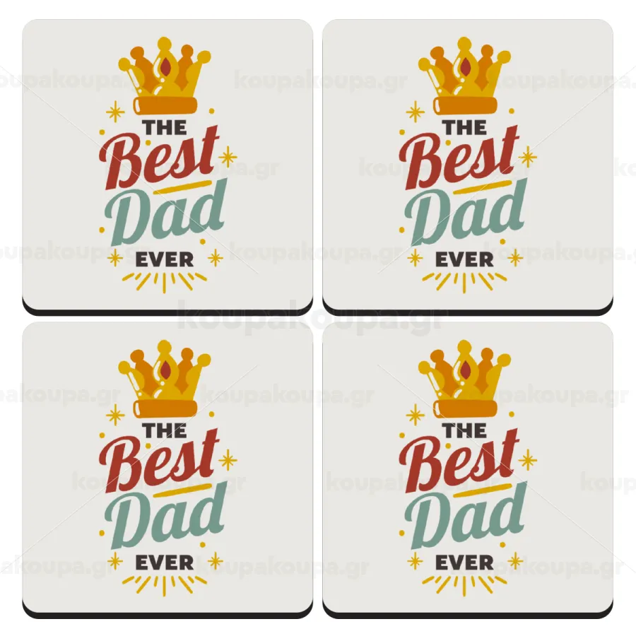 The Best DAD ever, ΣΕΤ 4 Σουβέρ ξύλινα τετράγωνα (9cm)