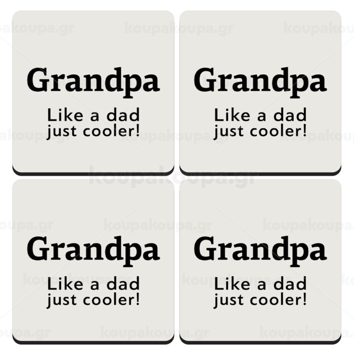Grandpa, like a dad, just cooler, ΣΕΤ 4 Σουβέρ ξύλινα τετράγωνα (9cm)