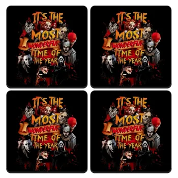 Halloween it's most wonderful time of the year, ΣΕΤ 4 Σουβέρ ξύλινα τετράγωνα (9cm)
