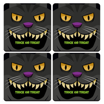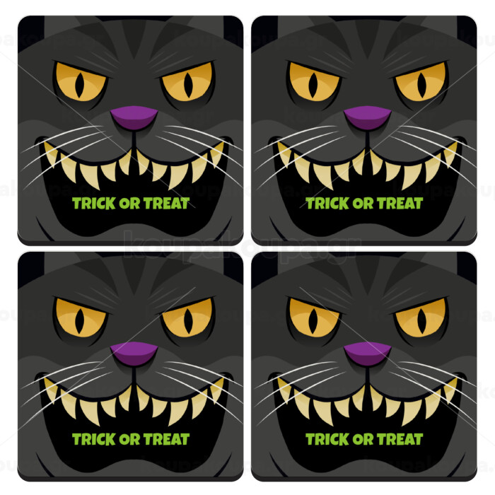 Halloween trick or treat Cat, ΣΕΤ 4 Σουβέρ ξύλινα τετράγωνα (9cm)