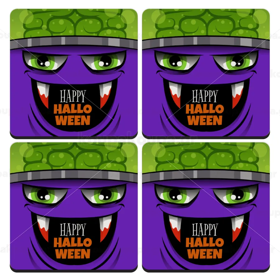 Halloween trick or treat Monster, ΣΕΤ 4 Σουβέρ ξύλινα τετράγωνα (9cm)