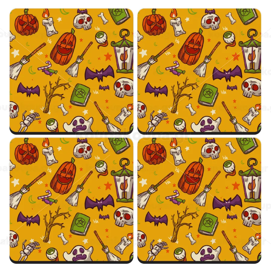 Happy Halloween, ΣΕΤ 4 Σουβέρ ξύλινα τετράγωνα (9cm)