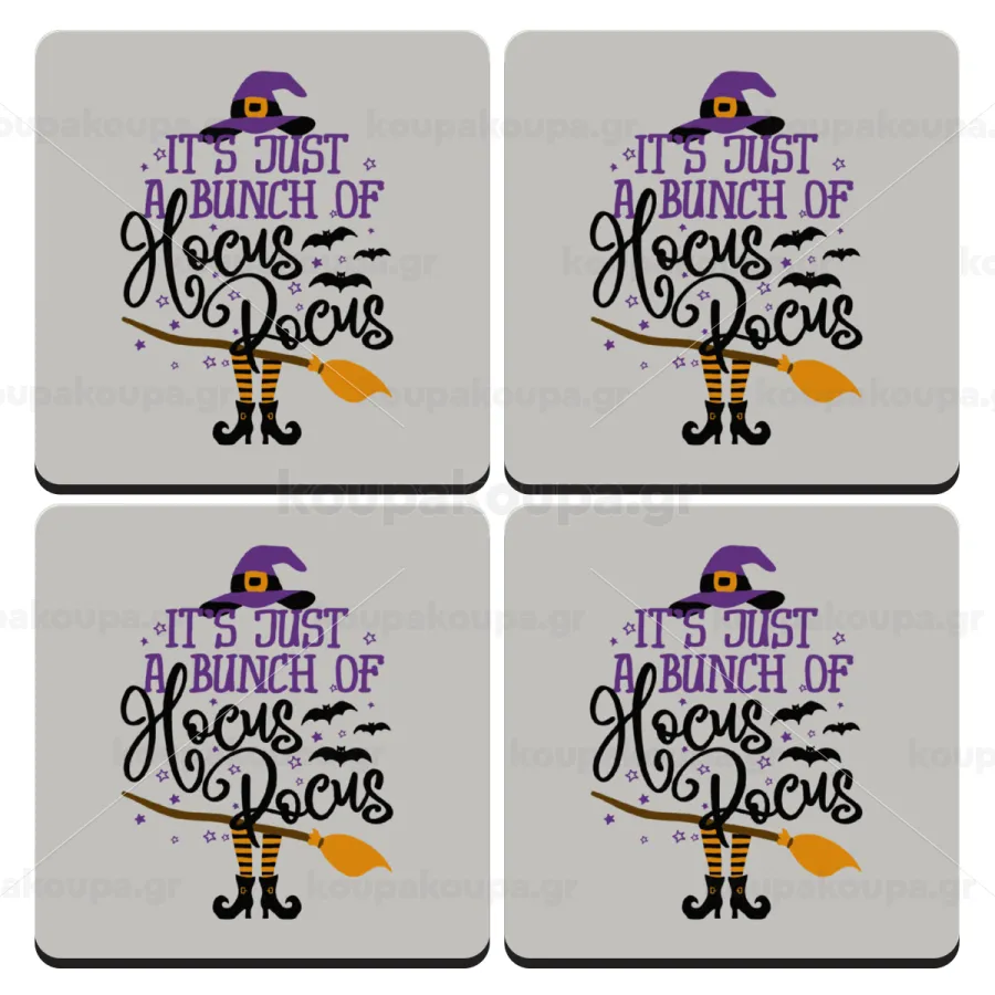 It's just a bunch of hocus pocus - halloween, ΣΕΤ 4 Σουβέρ ξύλινα τετράγωνα (9cm)