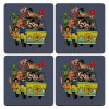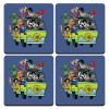Stitch Halloween scooby car, ΣΕΤ 4 Σουβέρ ξύλινα τετράγωνα (9cm)