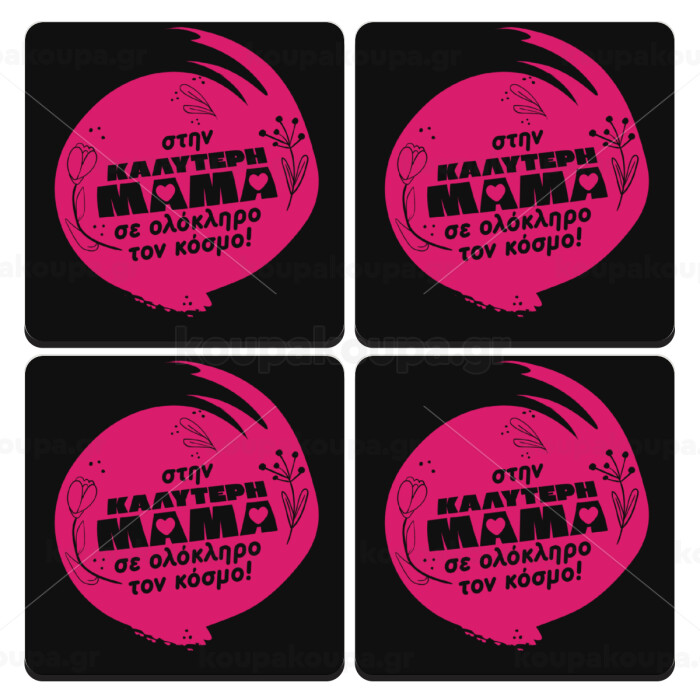 Στην καλύτερη μαμά του κόσμου!, ΣΕΤ 4 Σουβέρ ξύλινα τετράγωνα (9cm)