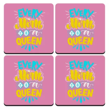 Every mom is a Queen, ΣΕΤ 4 Σουβέρ ξύλινα τετράγωνα (9cm)