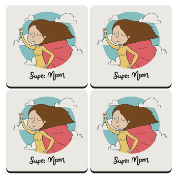 Super mom, ΣΕΤ 4 Σουβέρ ξύλινα τετράγωνα (9cm)