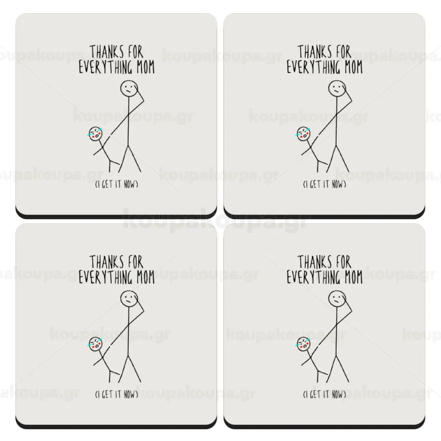 Thanks for everything mom, ΣΕΤ 4 Σουβέρ ξύλινα τετράγωνα (9cm)