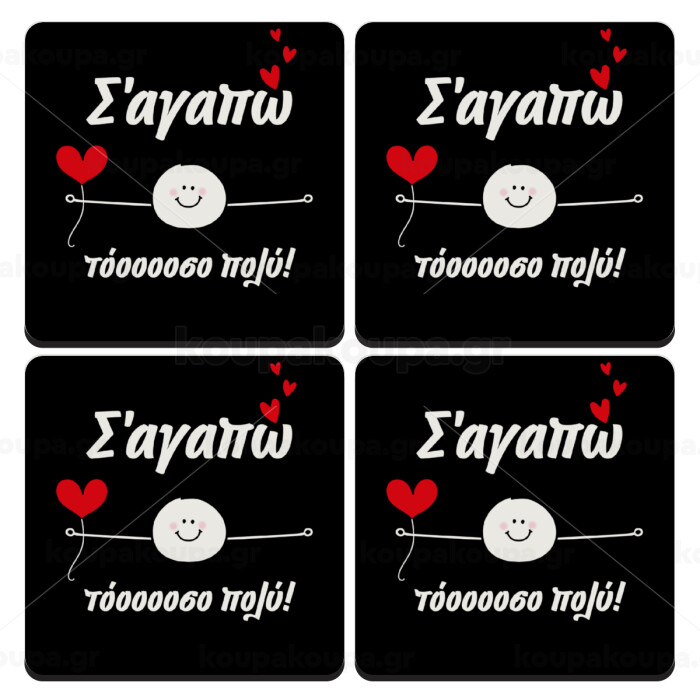 Σ΄αγαπώ τόοοοσο πολύ (Αγόρι)!!!, ΣΕΤ 4 Σουβέρ ξύλινα τετράγωνα (9cm)