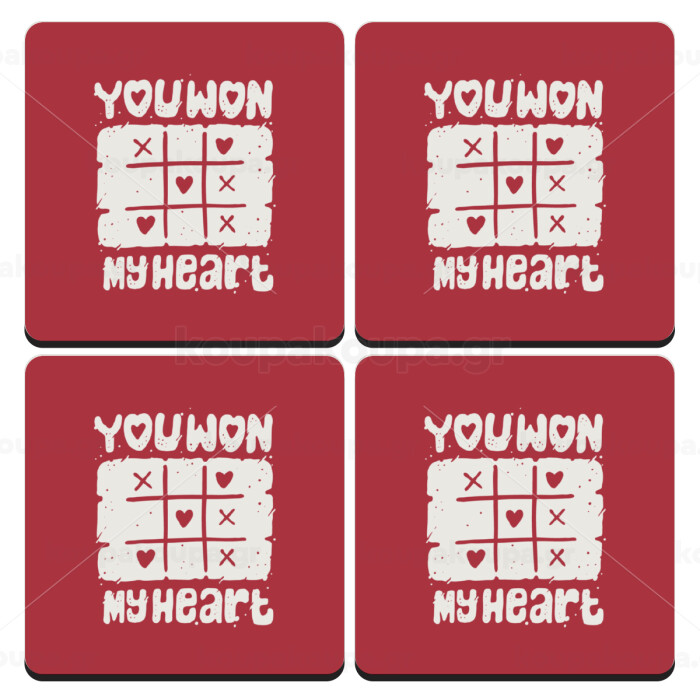 Τρίλιζα you won my heart, ΣΕΤ 4 Σουβέρ ξύλινα τετράγωνα (9cm)