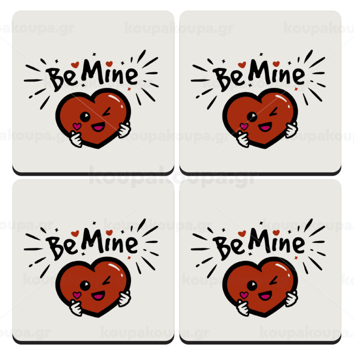 Be mine!, ΣΕΤ 4 Σουβέρ ξύλινα τετράγωνα (9cm)