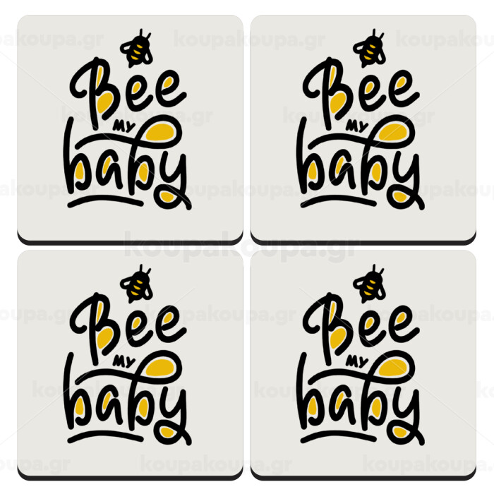 Bee my BABY!!!, ΣΕΤ 4 Σουβέρ ξύλινα τετράγωνα (9cm)