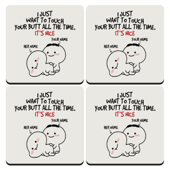 I Just Want To Touch Your Butt All The Time, ΣΕΤ 4 Σουβέρ ξύλινα τετράγωνα (9cm)