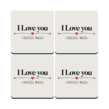 I Love you thisssss much, ΣΕΤ 4 Σουβέρ ξύλινα τετράγωνα (9cm)