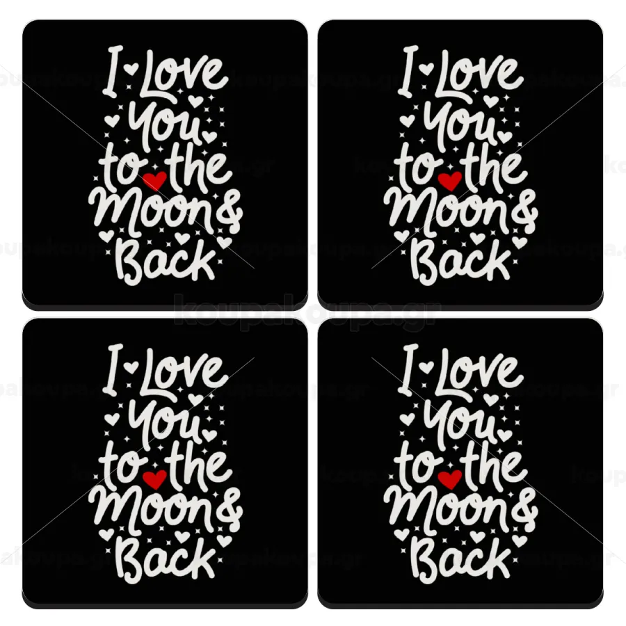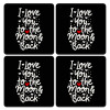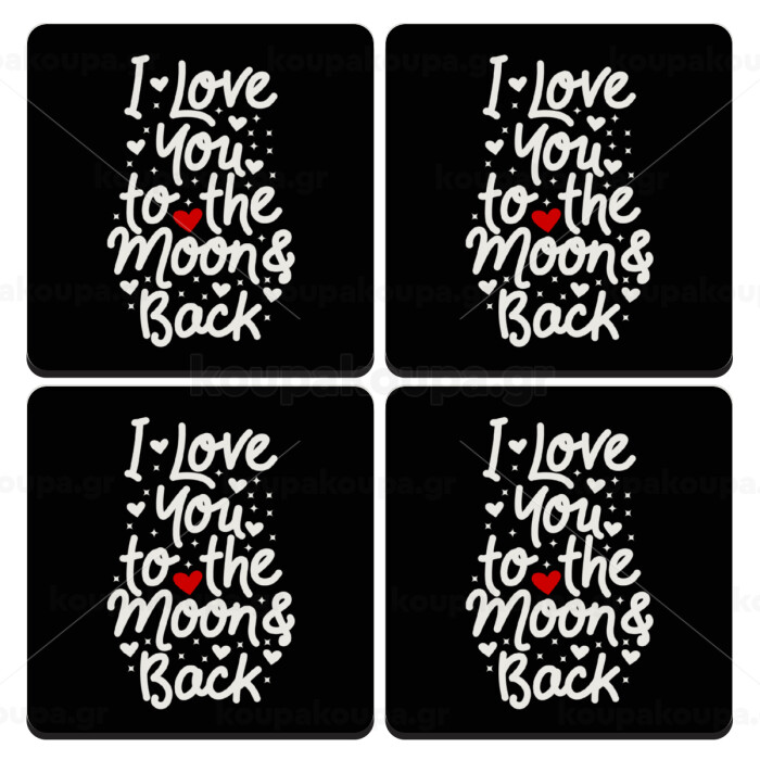 I love you to the moon and back with hearts, ΣΕΤ 4 Σουβέρ ξύλινα τετράγωνα (9cm)