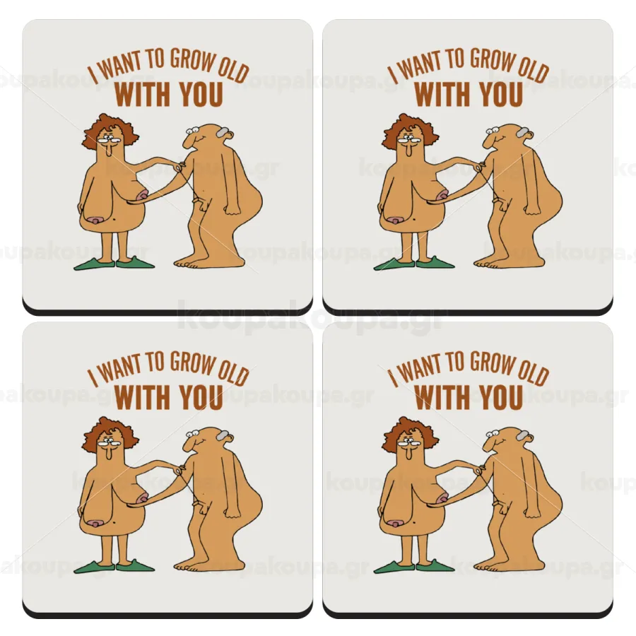 I want to grow old with you, ΣΕΤ 4 Σουβέρ ξύλινα τετράγωνα (9cm)