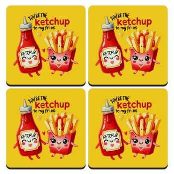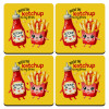 Ketchup To My Fries, ΣΕΤ 4 Σουβέρ ξύλινα τετράγωνα (9cm)