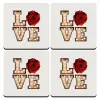 Love lights and roses, ΣΕΤ 4 Σουβέρ ξύλινα τετράγωνα (9cm)