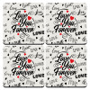 Love You Forever, ΣΕΤ 4 Σουβέρ ξύλινα τετράγωνα (9cm)