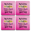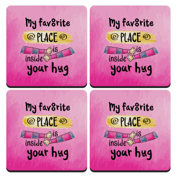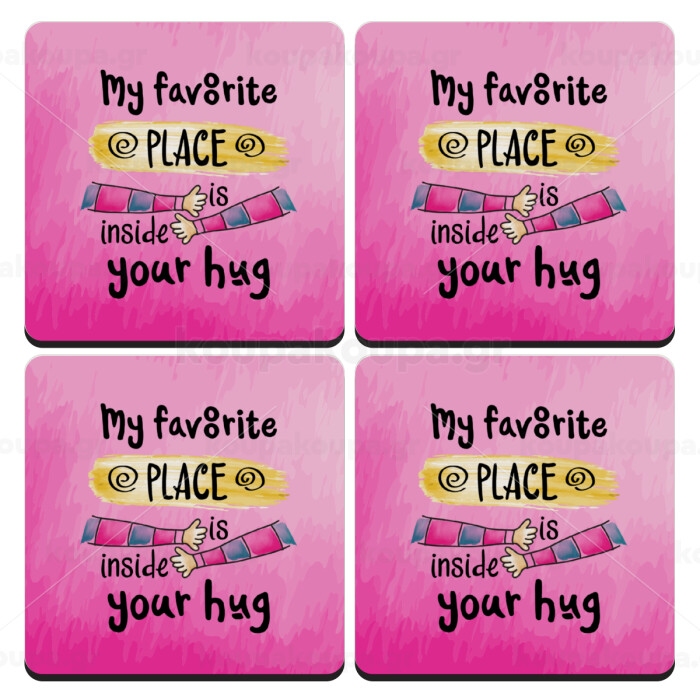 My favorite place is inside your HUG, ΣΕΤ 4 Σουβέρ ξύλινα τετράγωνα (9cm)