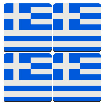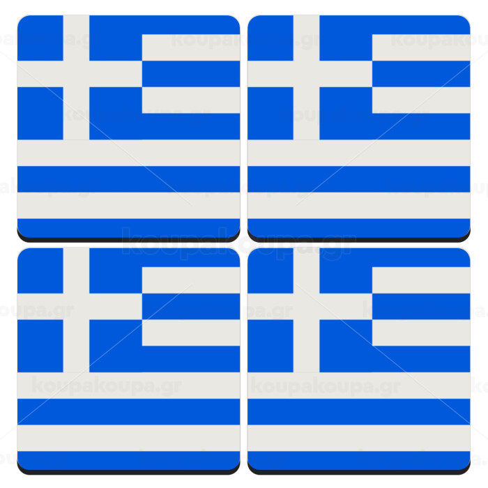 Greece flag, ΣΕΤ 4 Σουβέρ ξύλινα τετράγωνα (9cm)