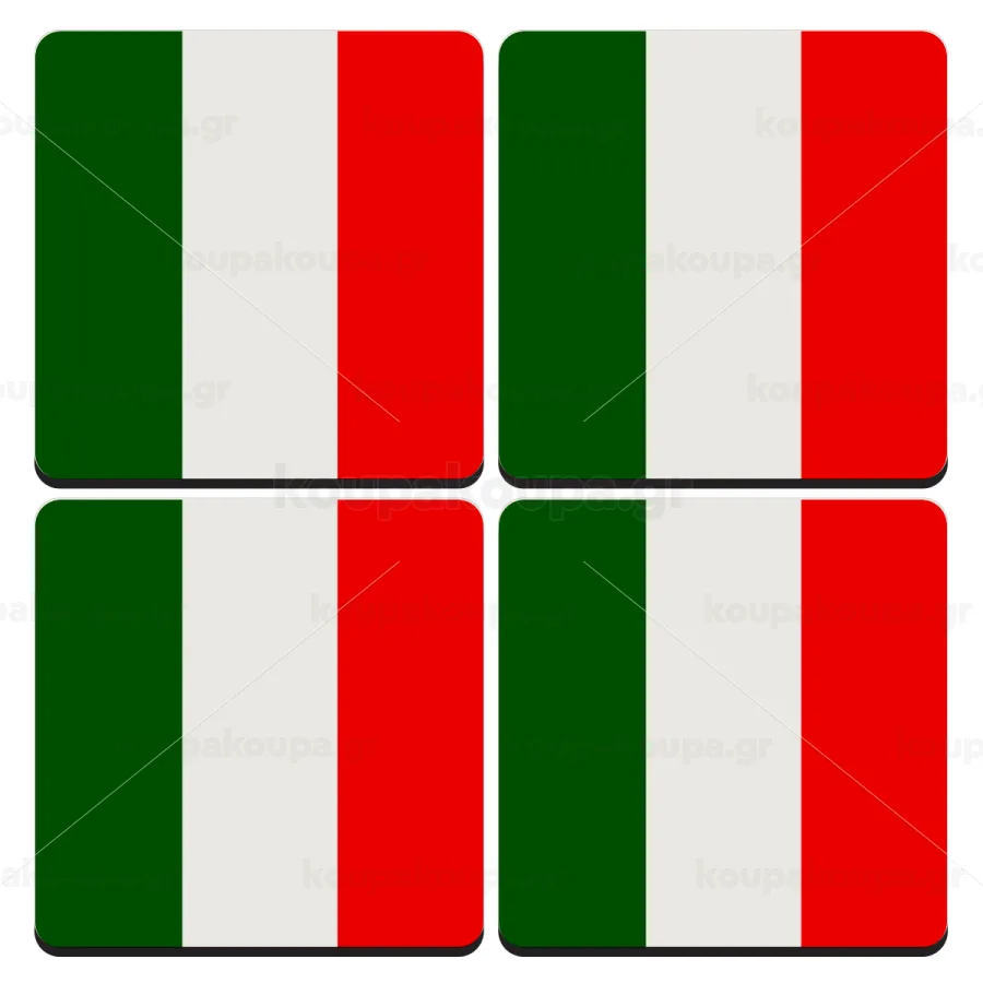 Italy flag, ΣΕΤ 4 Σουβέρ ξύλινα τετράγωνα (9cm)