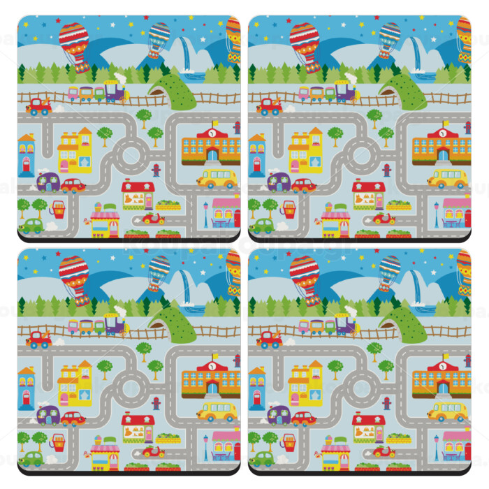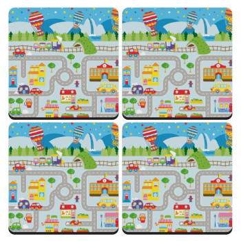 City road track maps, ΣΕΤ 4 Σουβέρ ξύλινα τετράγωνα (9cm)