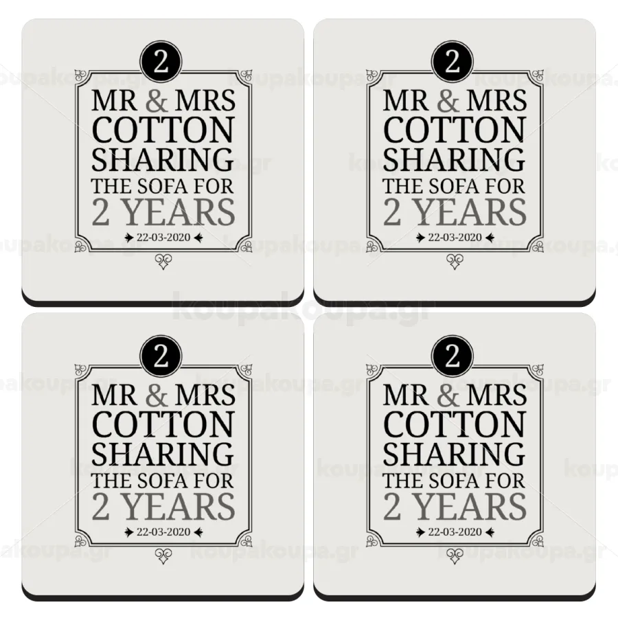 Mr & Mrs Sharing the sofa, ΣΕΤ 4 Σουβέρ ξύλινα τετράγωνα (9cm)