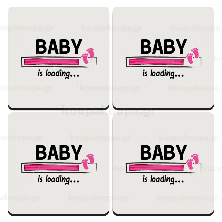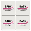 Baby is Loading GIRL, ΣΕΤ 4 Σουβέρ ξύλινα τετράγωνα (9cm)