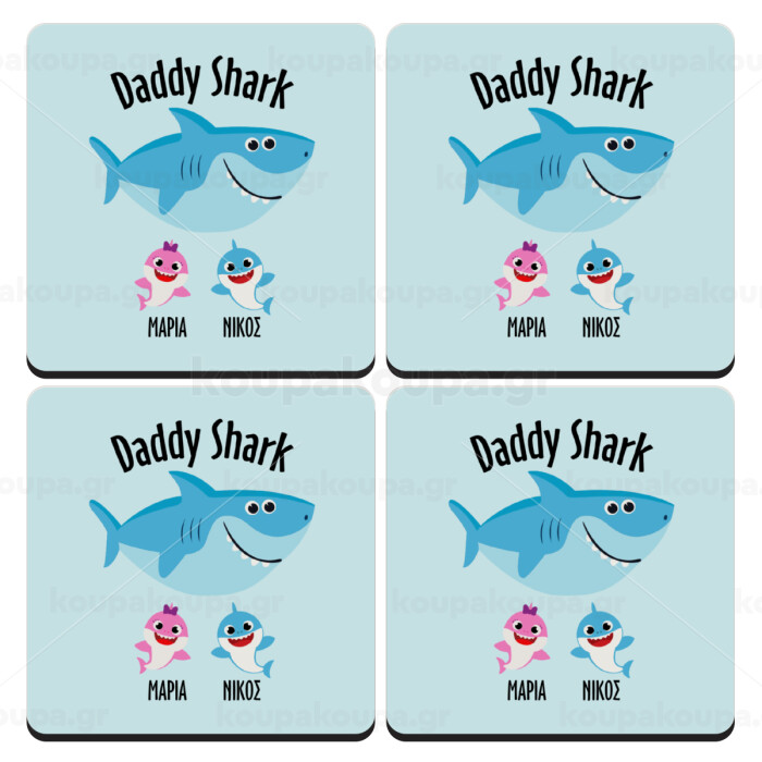 Daddy Shark (με ονόματα παιδικά), ΣΕΤ 4 Σουβέρ ξύλινα τετράγωνα (9cm)