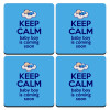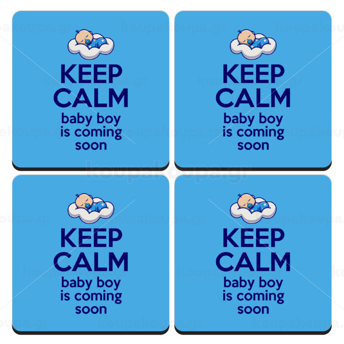 KEEP CALM baby boy is coming soon!!!, ΣΕΤ 4 Σουβέρ ξύλινα τετράγωνα (9cm)
